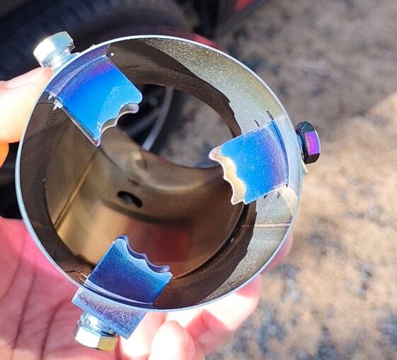 アフィリエイターラーの出口に直接マフラーカッターが当たらないように微調整してくださいね。