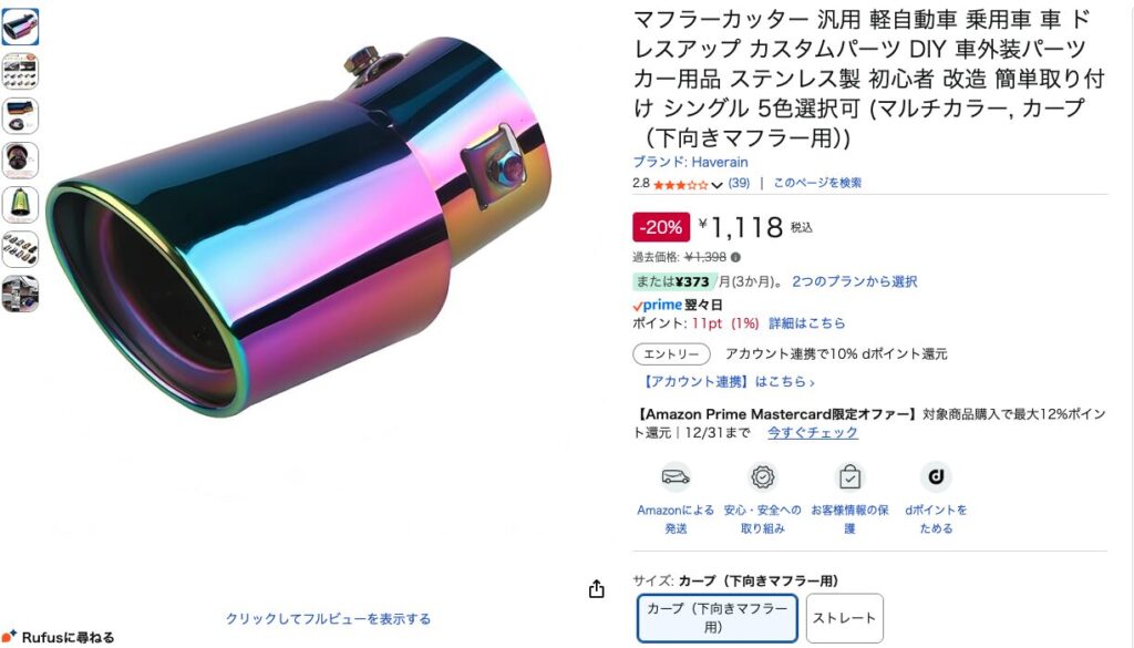 - 今回の対処:Amazonで1000円ちょいのマフラーカッターを試した