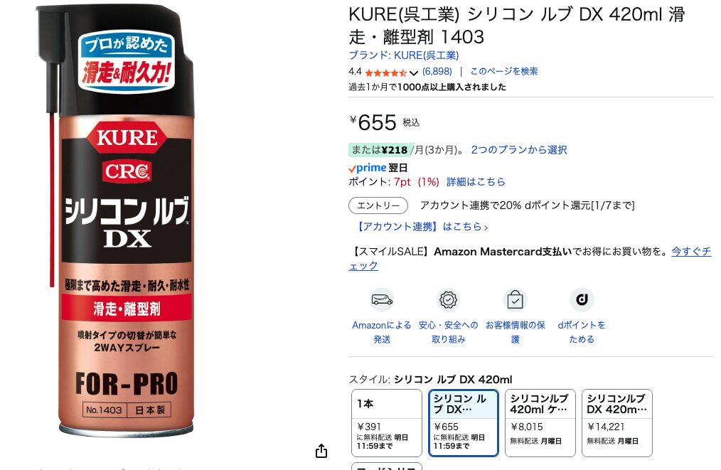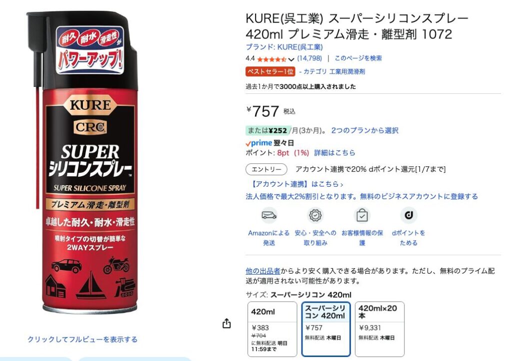 KUREの「スーパーシリコンスプレー」は、公式の製品情報で